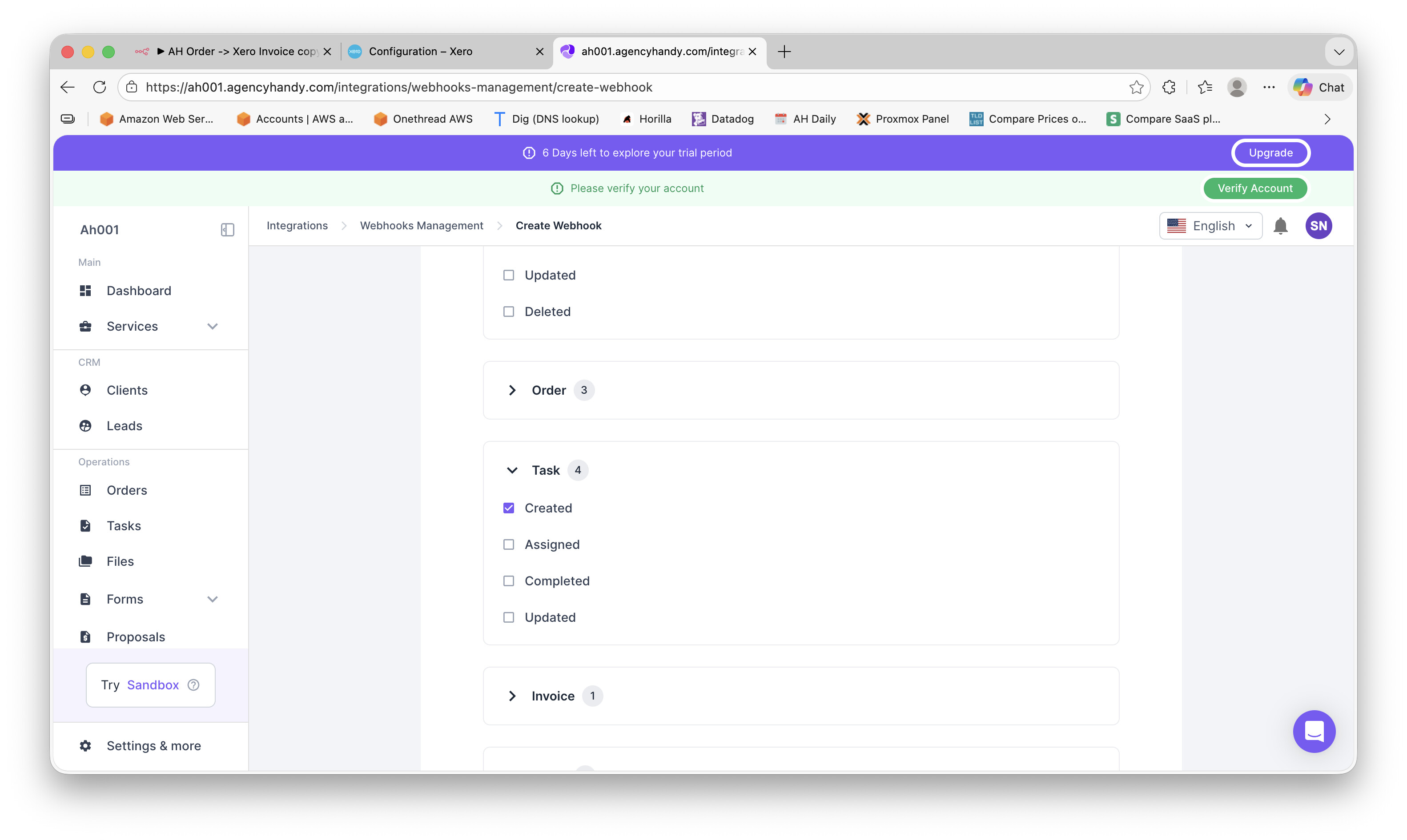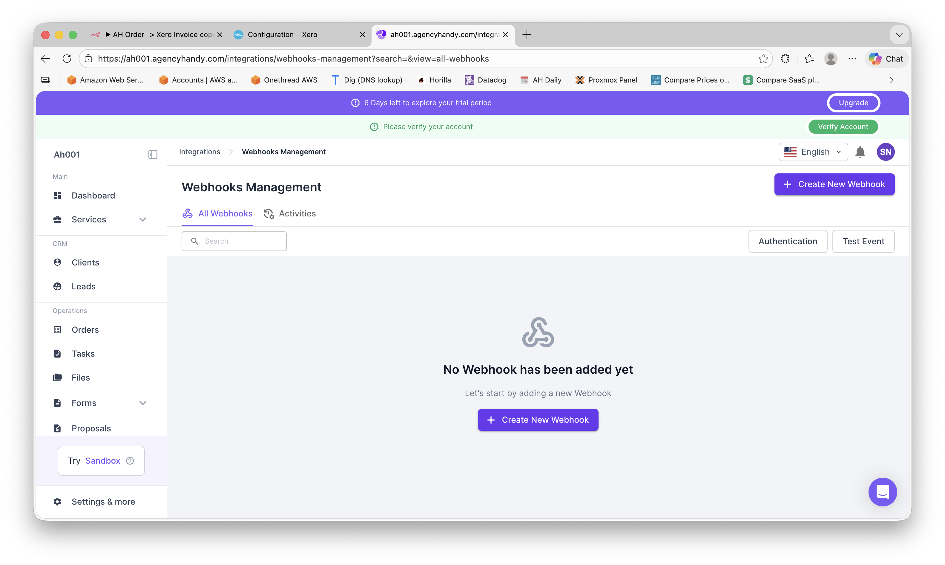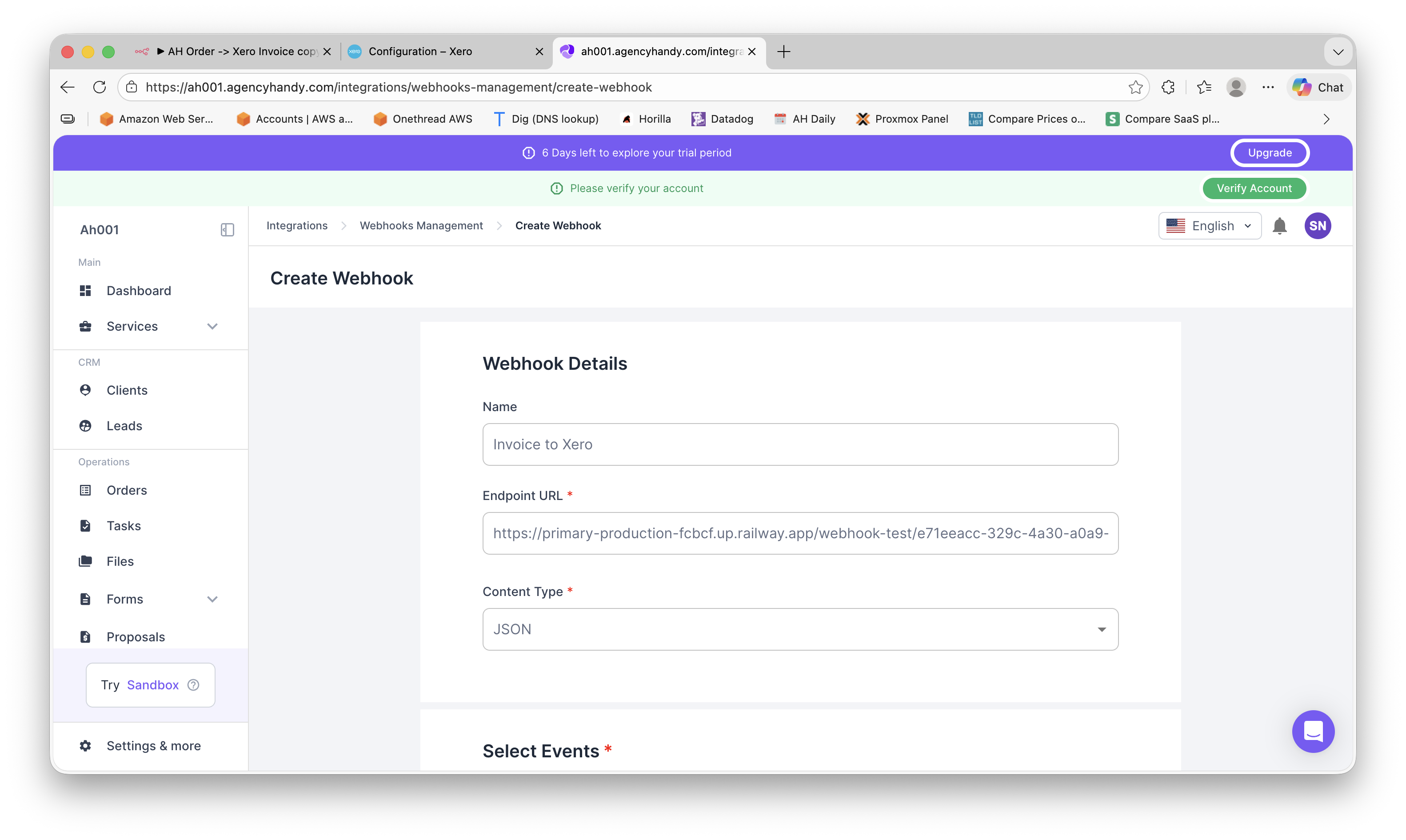 Follow these steps to create a Xero app in your account and connect it with the Agency Handy automation endpoint