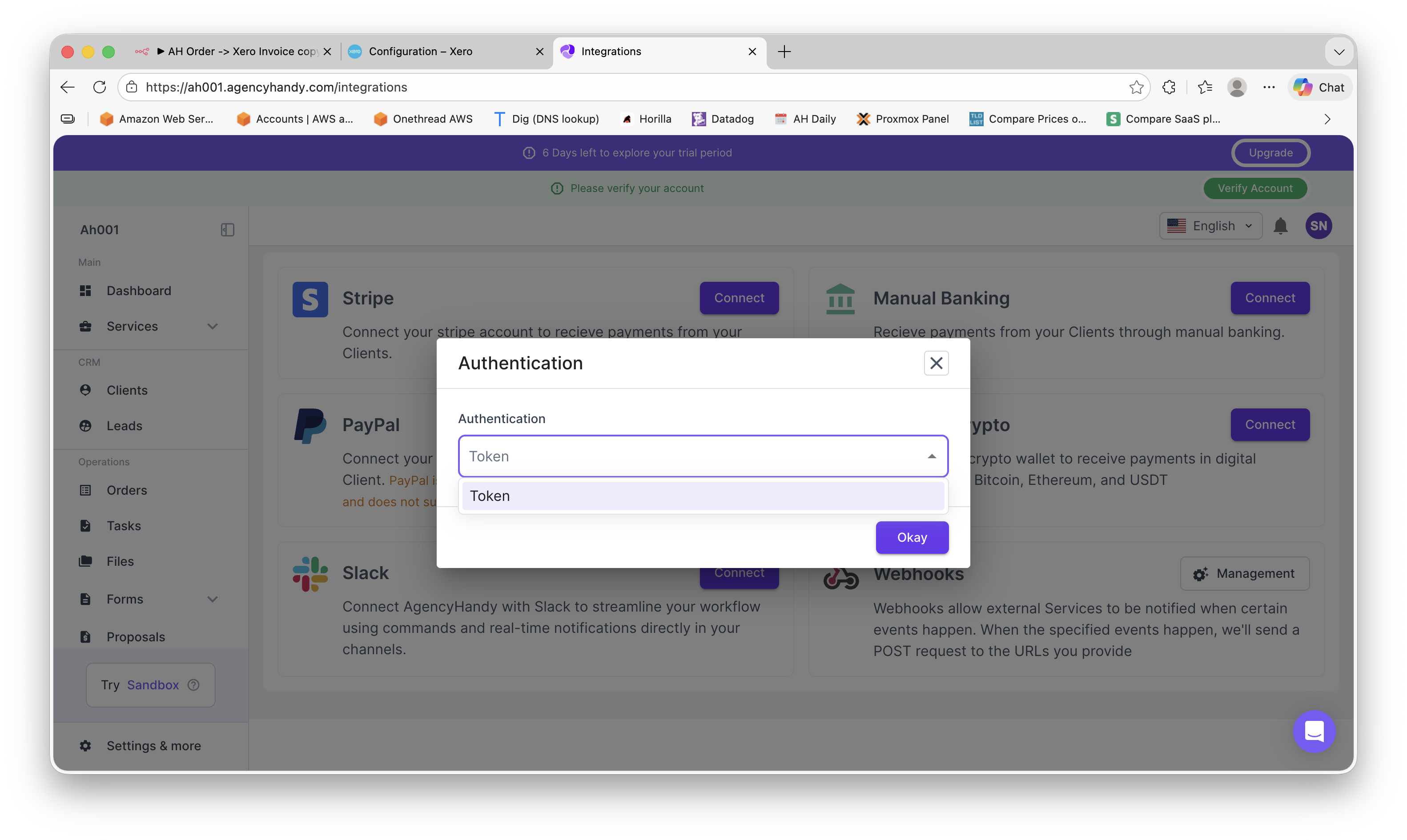 If you haven’t used the webhook feature in Agency Handy yet, click on ‘Webhook Management,’ select the ‘Token’ option from the dropdown, and click ‘OK’