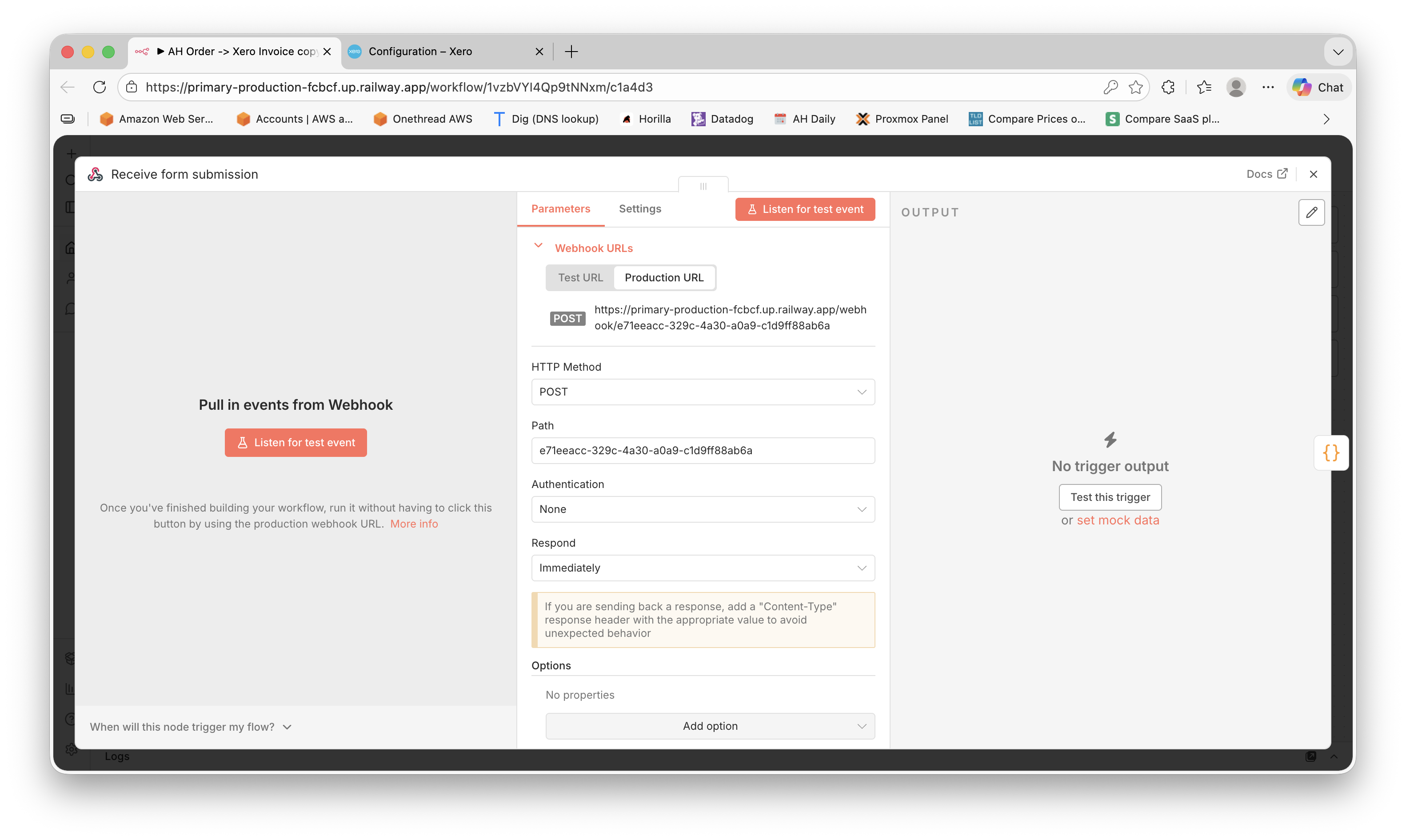 Double-click on ‘Receive form submission’ > ‘Production URL’ and copy the URL.