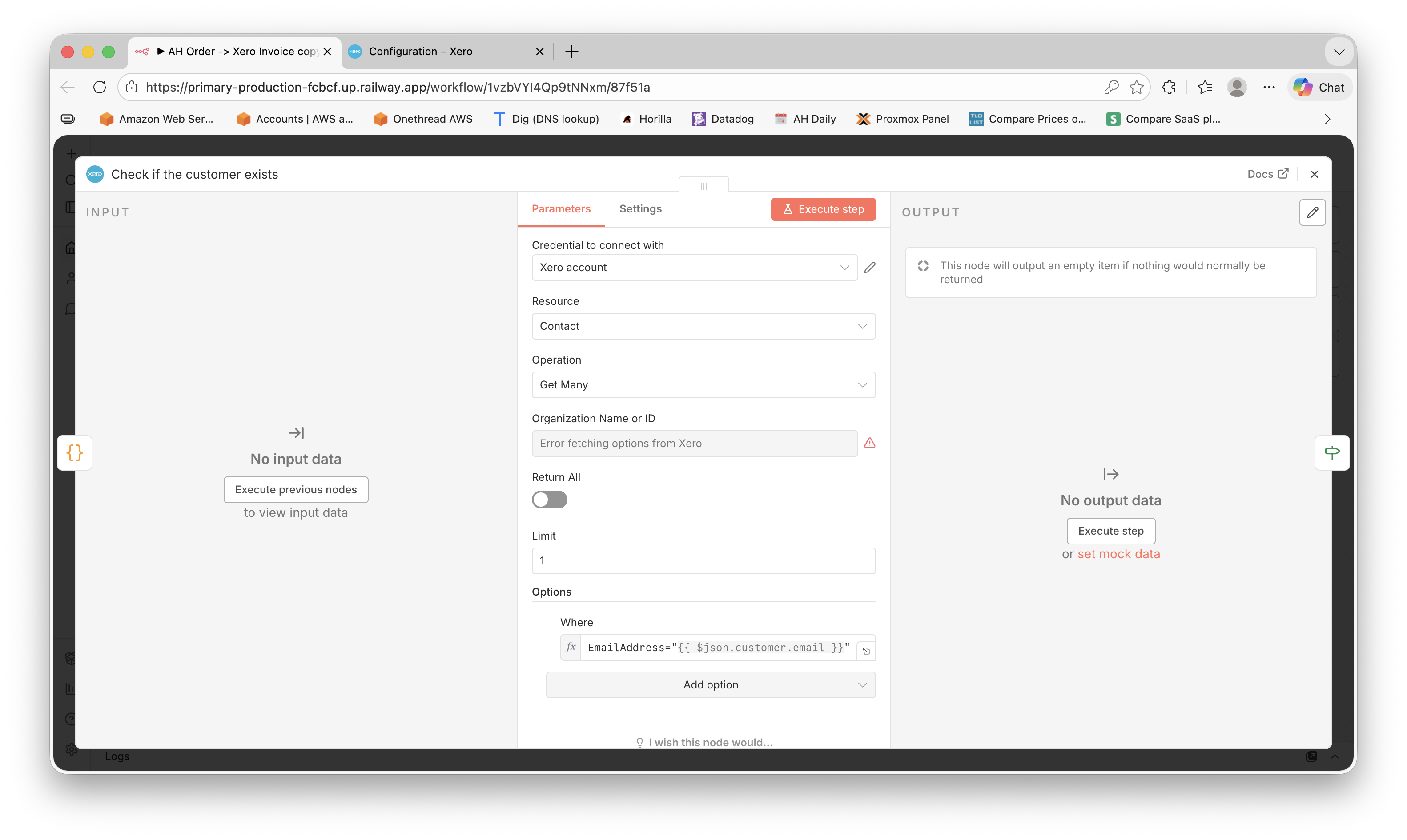 After you save, you’ll see that the Xero account is now connected in the n8n workflow.
