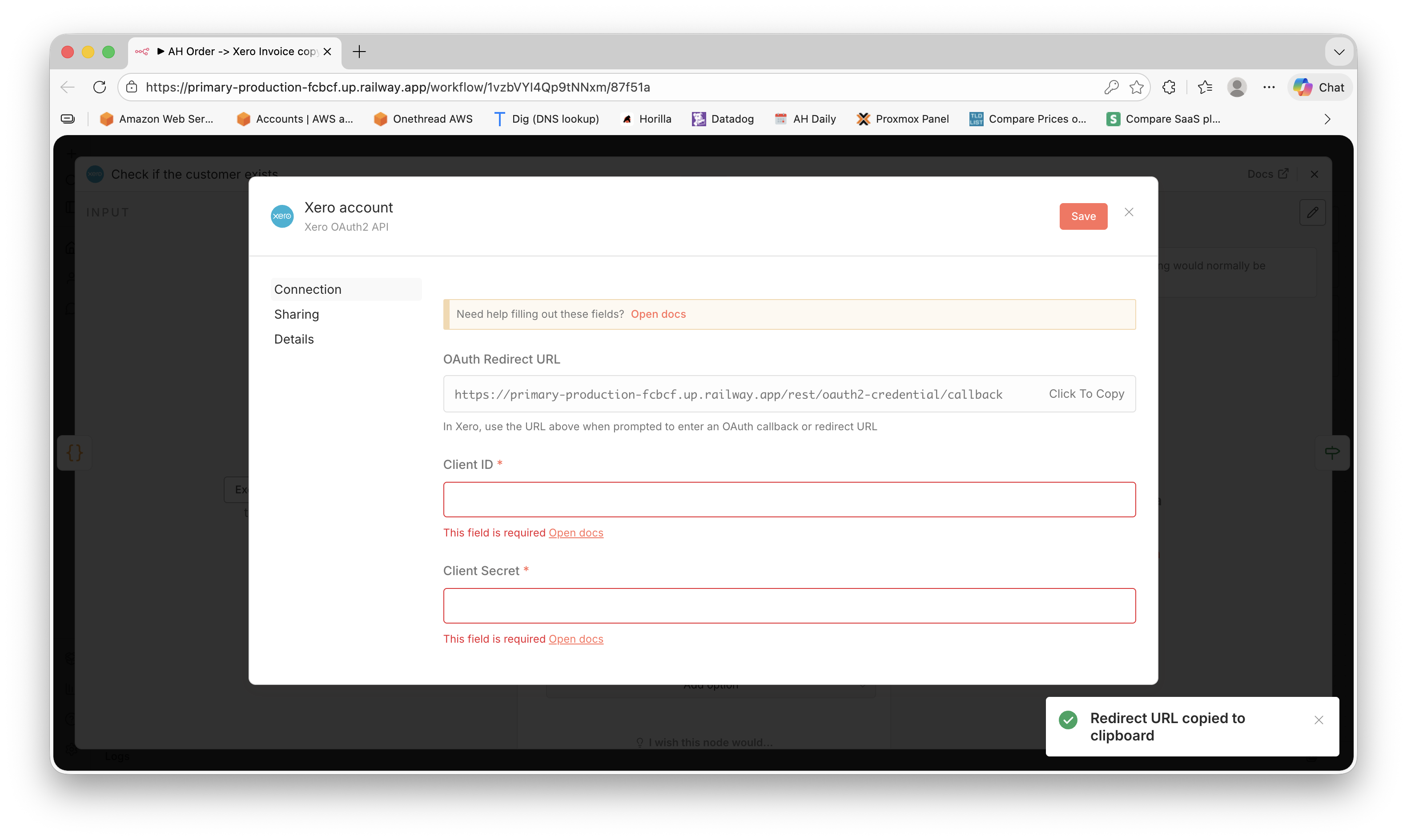 c. Use the URL you copied earlier from n8n workflow, for example, https://primary-production-fcbcf.up.railway.app/rest/oauth2-credential/callback