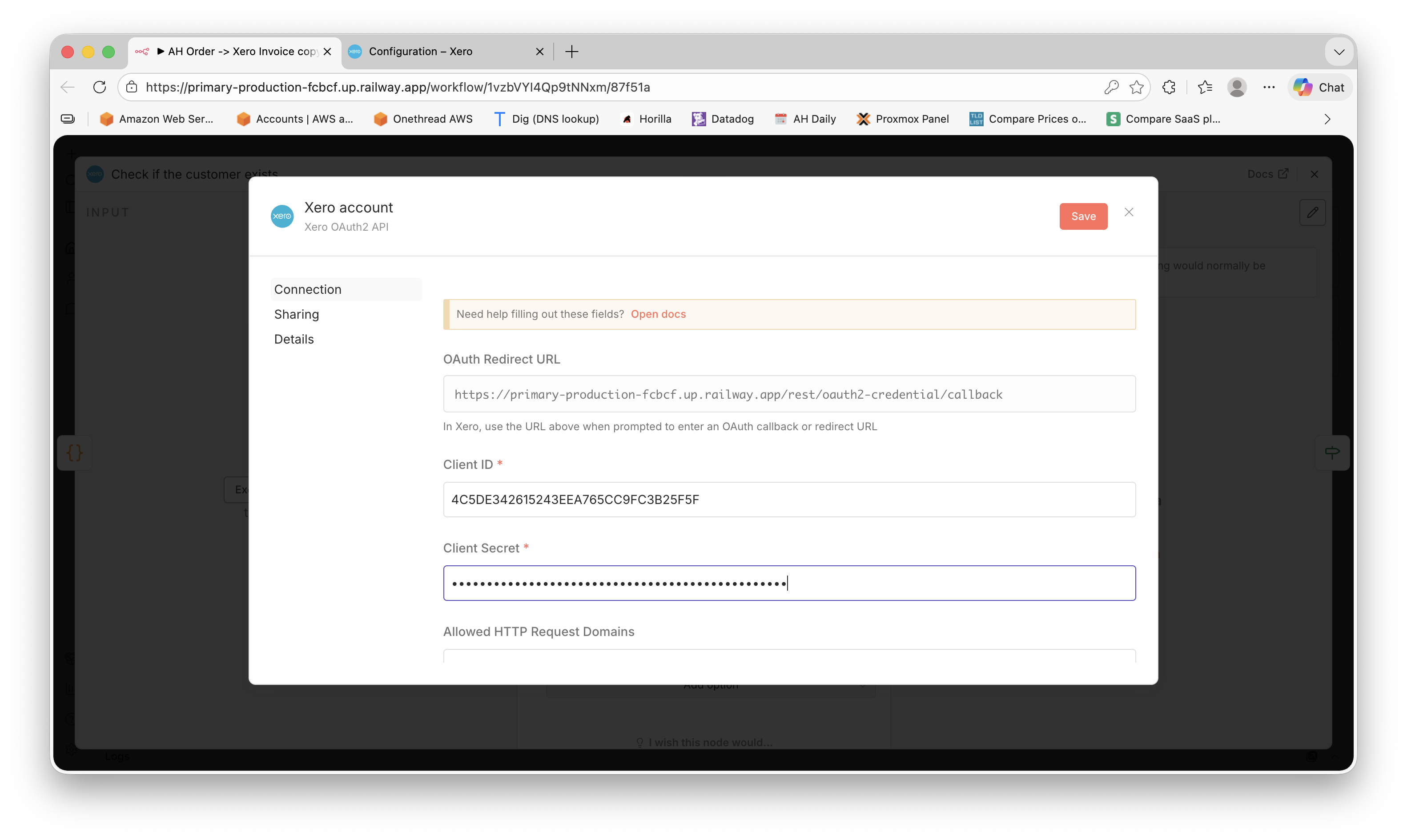 This section walks you through creating a Xero app, configuring OAuth credentials, and linking it with Agency Handy using an n8n workflow to automatically create invoices in Xero.